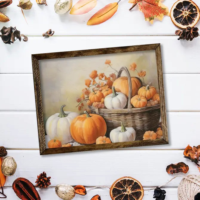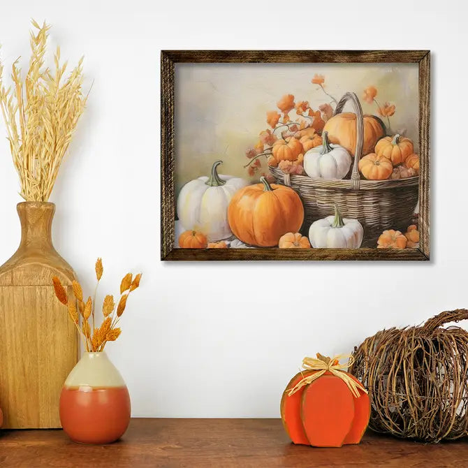 TIMBERLAND FRAME PUMPKINS IN A BASKET PAINTING